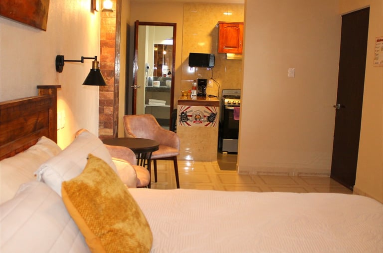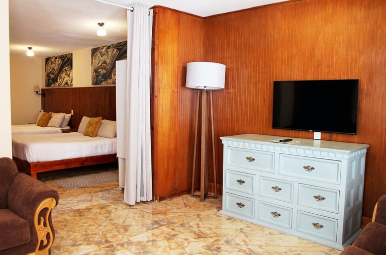 Cómodas suites en el corazón de Zacatlán Vive la magia de este Pueblo Mágico, rodeado de naturaleza y tradición, mientras disfrutas de una estancia acogedora y confortable.