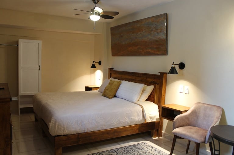 Vive una experiencia única en espacios diseñados para tu descanso y bienestar. Nuestras habitaciones y suites boutique combinan amplitud, confort y tranquilidad para que tu estancia en Zacatlán sea inolvidable. Disfruta de: